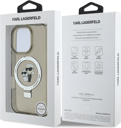 Karl Lagerfeld Ringstand Karl and Choupette MagSafe tālruņa aizmugurējais vāciņš ir lielisks aksesuārs visiem stila un praktiskuma cienītājiem. |