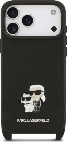 Karl Lagerfeld Saffiano Crossbody Strap Metal Karl and Choupette Case Aizsargapvalks priekš Apple iPhone 17 Pro Max
