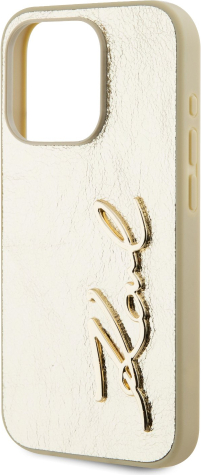 Karl Lagerfeld Wrinkled PU Signature Logo Aizsargapvalks priekš iPhone 15 Pro Max / zelts