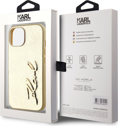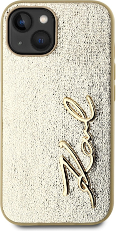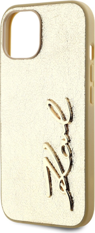 Karl Lagerfeld Wrinkled PU Signature Logo Case Aizsargapvalks priekš iPhone 15 / zelts