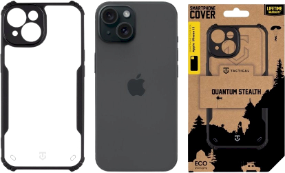 Tactical Quantum Stealth Cover Aizsargapvalks priekš Apple iPhone 15 / caurspīdīgs/melns