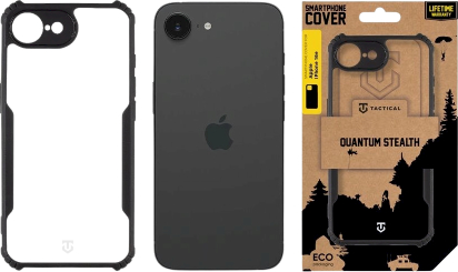 Tactical Quantum Stealth Cover Aizsargapvalks priekš Apple iPhone 16e / caurspīdīgs/melns