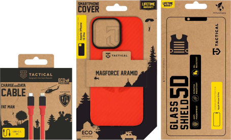 | Trīs ieroči, viena misija. Digitālajā pasaulē jums ir nepieciešams aprīkojums, kas jūs atbalstītu. Mēs piedāvājam jums labāko kombināciju, kas paaugstinās jūsu tālruni citā līmenī. Comba ietver aramīda vāciņu, silikona kabeli un aizsargstiklu tālruņa ekrānam. Tactical MagForce Aramid Bloody Mary Limited Edition Sarkans ierobežotājs, kas izgatavots no kevlāra šķiedrām, t.i., no tāda paša materiāla kā militārais aprīkojums. Neuzkrītošs glābējs, kura biezums ir tikai 0,8 mm. Ar neslīdošu rokturi, tas paliek pielīmēts un neslīd pat darbībā. Bez kompromisiem, tikai pilnīga MagSafe savietojamība. Tactical Fat Man Īpaši izturīgs 6 mm samta silikona kabelis, kas ir patīkams taustei. Haoss mugursomā? Aizmirsti to. Tas vienkārši nesapinīsies. Ar silikona siksnu nav nekādu papildu traucējumu. Bez attaisnojumiem, jauda 60W. Tactical Glass Shield 5D Bruņota trieciena aizsardzība var tikt galā ar līdz pat 10 000 skrāpējumiem, nezaudējot pušķi. Lieliski iederas bez burbuļiem un bez kompromisiem. Neizkropļo displeja krāsas. Atgrūž taukus, putekļus un ūdeni. NEAPMAKSĀMI IZTURĪGI Šie gabali nav paredzēti tikai izrādei. Šeit, Tactical, mēs rūpējamies, lai viss ilgst. Visas trīs daļas testēšanas laikā ir pakļautas skarbiem apstākļiem, un mēs esam izmantojuši ļoti izturīgus materiālus un pielietojuši jaunākās tehnoloģijas, lai nodrošinātu vislabāko iespējamo rezultātu. BE ECO Mēs Tactical mīlam dabu. Visi mūsu produkti ir iepakoti EKO kastēs, kas izgatavotas no pārstrādāta papīra, lai pēc iespējas mazāk ietekmētu vidi. Padomā taktiski! |