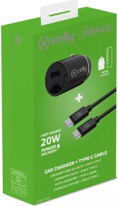 CELLY CCMINITYPEC - CAR CHARGER USB-C+USB-C TO USB-C CABLE 20W [PRO POWER]