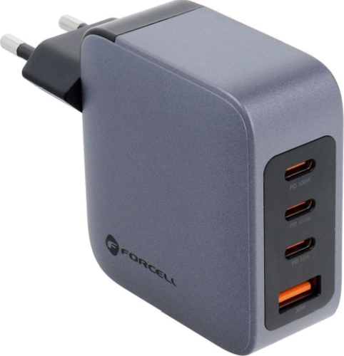 Forcell sienas lādētājs, kas izgatavots, izmantojot GAN tehnoloģiju, ar kopējo jaudu 100 W. Tas atbalsta Quick Charge 4.0, Power Delivery un Super Fast Charging 2.0 uzlādes standartus un ļauj uzlādēt tālruņus un planšetdatorus, kā arī klēpjdatorus. Tam ir četras pieslēgvietas – trīs USB-C un viens USB-A – un tas var vienlaikus uzlādēt līdz četrām ierīcēm.