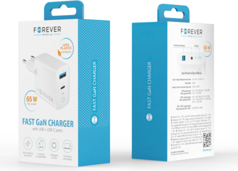 Forever TC-06 GaN Lādētājs PD / QC / 1x USB-C / 1x USB / 65W