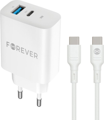 Forever TC-07 Tīkla Lādētājs PD / QC / USB-C / USB / 30W + USB-C Kabelis 60W
