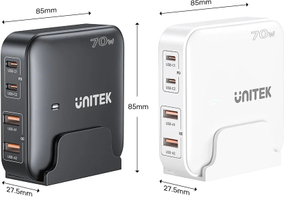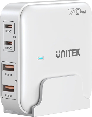 GaN network charger - Unitek P1228AWH01-EU | 70W 2x USB-C 2x USB-A