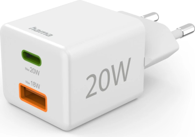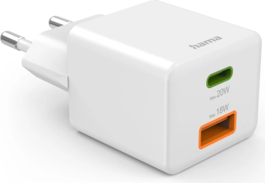 Hama 00201991 Fast Charger 1x USB-C 1x USB-A, Mini Charger, PD, 20W, White