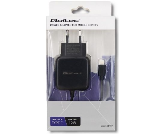 Qoltec 50197 Charger 12W | 5V | 2.4 | USB type C | Black