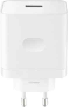 realme SUPERVOOC 80 W barošanas adapteris baltā krāsā ir augsti veiktspējīgs sienas lādētājs, kas paredzēts ātrai uzlādei saderīgām viedierīcēm. Ar maksimālo jaudu 80 W tā atbalsta realme patentēto SUPERVOOC 2.0 ātro uzlādes tehnoloģiju. Adapterim ir universāls ieejas spriegums 100-240 V ~ 50/60 Hz, kas ļauj to izmantot visā pasaulē. Izejas parametri sasniedz 11 V / 7,3 A, nodrošinot pilnu jaudu. Iebūvēta aizsardzība pret pārspriegumu, pārstrāvu un pārkaršanu. Kompakts korpuss baltā krāsā — piemērots gan mājas, gan ceļošanas lietošanai. Tehniskās īpašības: