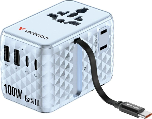 Tips: Verbatim Travel Adapter EU/UK/US GaN 2xUSB-C/2xUSB-A/1xUSB-C PD 100W