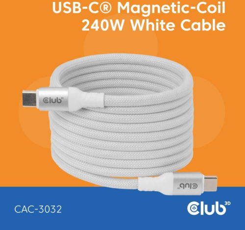 USB-C® Magnetic-Coil 240W White Cable Manufacturer Website: https://www.club-3d.com/en/detail/2706/usb_cr_magnetic_coil_240w_white_cable/ | ||||||||||||||||||||||||||||||||