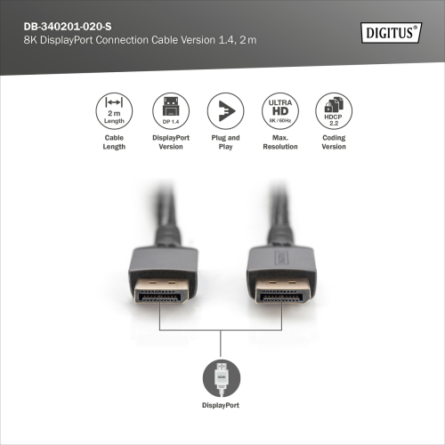 Digitus Connection Cable DB-340201-020-S DisplayPort to DisplayPort