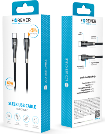 Forever Sleek Kabelis USB-C / USB-C 1.0 m / 60W