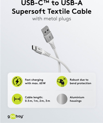 Goobay USB-C to USB-A Supersoft Textile Cable with Metal Plugs 74530