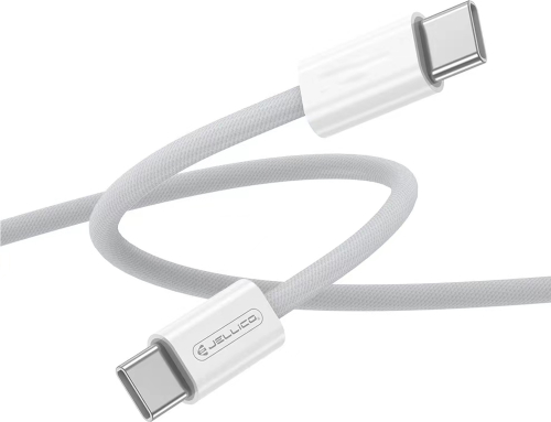 JBL Jellico IP15 Pīta auduma iPhone 15 / 16 USB-C uz USB-C Datu & Ātrās PD 60W uzlādes kabelis 1m Balts