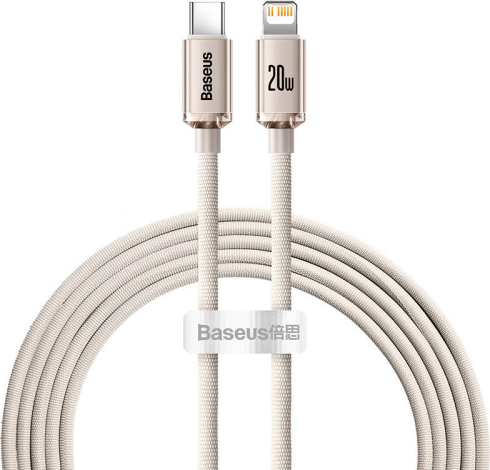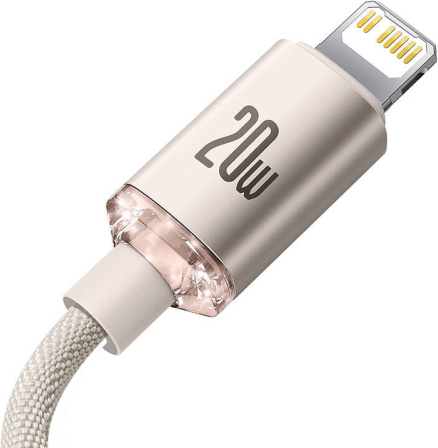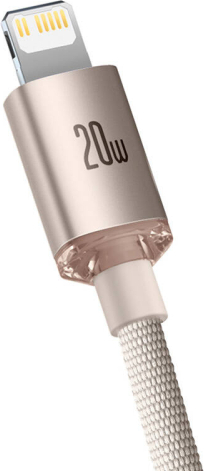 Baseus Crystal Shine USB-C to iP cable, 20W, 2m (pink)Now you can charge your devices in less time. The cable supports 20W fast charging and allows you to transfer files at 480 Mbps. In addition, it has passed numerous tests for durability, so you can be sure it will last you a long time.
