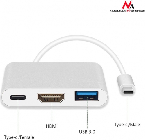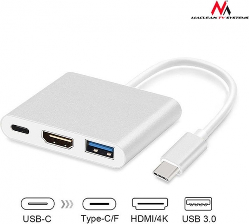 Maclean MCTV-840 Adapter USB-C - HDMI / USB 3.0 / USB-C metal housing 4K OTG
