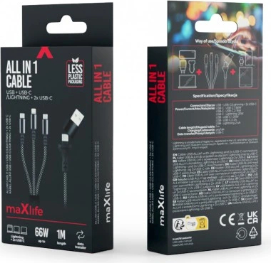 Maxlife ALLin1 66W USB / USB-C / Lightning / 2x USB-C Vads 1m