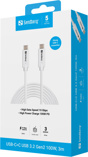 Sandberg 136-75 USB-C>C USB 3.2 Gen2 100W, 3m