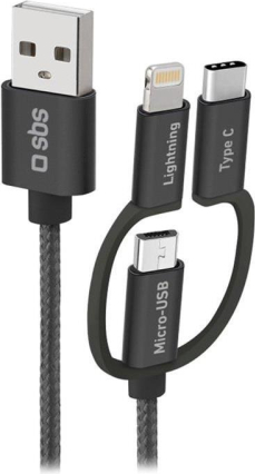 SBS USB / Micro USB, USB-C, Lightning, black - USB cable