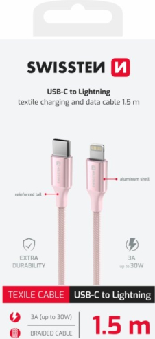 Swissten Textile II USB-C - Lightning Datu un Uzlādes Vads 1.5m