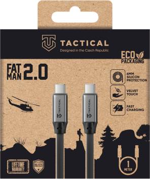 | TACTICAL FAT MAN 2.0 Tactical Fat Man 2.0 ir ātrās uzlādes kabelis ikdienas lietošanai ar jaudu līdz 60W. Tas ir paredzēts telefona, planšetdatora un klēpjdatora barošanas bloks un, pateicoties izturīgajam pastiprinājumam 6 mm silikona slāņa veidā, tas var tikt galā ar i prasīga ārstēšana. Kabelis ir aprīkots ar oriģinālajiem alumīnija sakausējuma savienotājiem, kas nodrošina stabilu a stabils savienojums. Gatavs darbībai, MIL-STD pārbaudīts. LAUKS READY Tā atbalsta USB2.0 standartu ar ātru uzlādi līdz 60 W. Oriģinālie savienotāji izgatavoti no alloy alumīnijs ir izstrādāts, lai izturētu atkārtotu lieces spriegumu un garantētu uzticamību neatkarīgi no izmantotās ierīces. CELTNIECĪBA LĪDZ LAST Masīvs 6 mm pastiprināta silikona slānis aizsargā kabeli pret locīšanu, nodilšanu un normālu nodilumu a pagarina tā mūžu. MIL-STD TESTED Tactical Fat Man 2.0 atbilst militārā standarta MIL-STD-810H 516.8 prasībām, kas apliecina tā augsto izturība pat prasīgos apstākļos PRAKTISKA LOCK Integrētā silikona slēdzene ļauj ērti uzglabāt kabeli un ātri to izmantot, kad vien nepieciešams. NEAPMAKSĀMI IZTURĪGI Tactical mēs uzsveram detaļas. Fat Man 2.0 ietilpst savā klasē, pateicoties durable izmantošanai. materiāli un modernas tehnoloģijas, kas nodrošina uzticamu veiktspēju un ilgu kalpošanas laiku. Tāpēc šis kabelis, kas iekļauts mūsu mūža garantijas programmā. *Skatiet Tactical mūža garantijas programmas noteikumus. BE ECO Vides jautājumi mums. Mēs iesaiņojam visus savus Tactical produktus videi draudzīgā iepakojumā z pārstrādāts papīrs, lai samazinātu ietekmi uz dabu. |