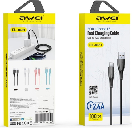 USB cable Awei CL-182T USB to USB-C 1.0m black