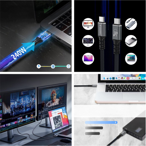 The Wozinsky WPS-UY42S is a premium Thunderbolt 4 cable with charging support up to 240W and ultra-fast data transfer rates of up to 40Gbps. Designed with professional users in mind, it offers video support up to 8K@60Hz and full compatibility with Thunderbolt 4, Thunderbolt 3, USB4, and USB-C PD ports. Ideal for laptops, monitors, docking stations, tablets, and the latest iPad and MacBook models. Crafted from durable materials—an aluminum housing and dense nylon braiding—it ensures maximum reliability and wear resistance. Specification: