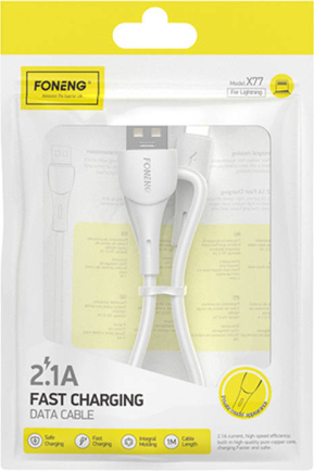 Foneng X77 Lightning CableThe Foneng X77 cable will allow you to charge your iPhone in just a few moments. The X77 is capable of charging at 2.1A. You can also use it to transfer files freely. The cable is made of robust plastic, which is characterised by high resistance to wear. Its end is additionally reinforced, making it resistant to repeated bending or pulling.
