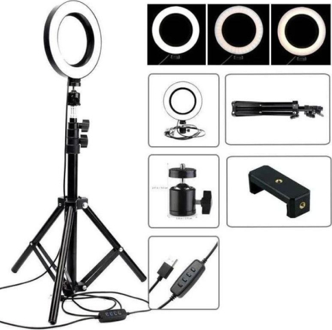 Gredzena LED lampa ar tālruņa stiprinājumu XT Lampu darbina USB 5V, tāpēc to var viegli izmantot jebkur ar PowerBanku vai standartu barošanas bloku. Labākā izvēle apgaismojumam mājās un studijā. Priekšrocības: - Vienmērīga spilgtuma un spīduma temperatūras regulēšana, izmantojot tālvadības pulti SPECIFIKĀCIJAS: |