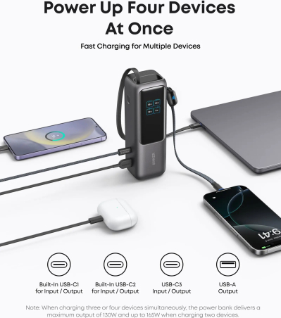 | More information: anker-power-bank-25000mah-165w-ultra-fast-portable-charger-with-built-in-and-retractable-usb-c-cables-a1695 (external link) | ||||||||||||||||||||||||||||||||||||||||||