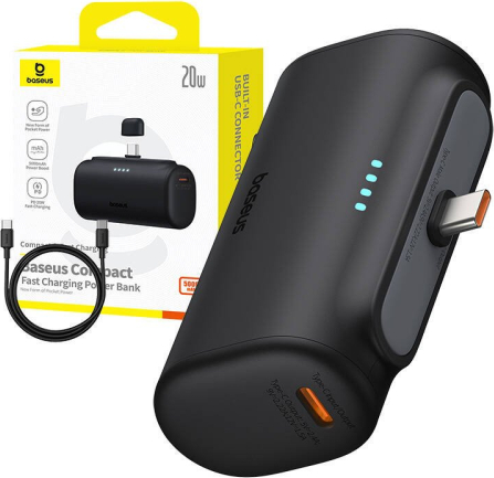 Baseus Compact Powerbank 5000mAh 20W USB-C Melns