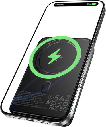 1. Capacity: 10000mAh 38.5Wh Rated capacity: 5500mAh2. Input: USB-C: 18W3. Output: USB-C: 20W (PD/QC/FCC/AFC); Wireless charging: 5W/7.5W/10W/15W (MagSafe 7.5W); Total output: 5V/2A4. Display: LED light shows battery level5. Material: ABS+PC+lithium polymer battery cell6. Size: 100 * 69 * 18mm; Weight: 200g