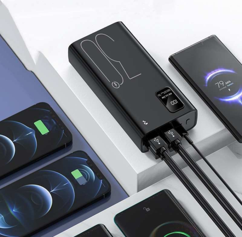 Specifications: Capacity: 30000 mAh Maximum output power: 22.5 W Outputs: 4 × USB-A: 5V/4.5A, 9V/2.22A, 12V/1.67A 1 × USB-C: 5V/4A, 9V/2.22A, 12V/1.67A (QC 3.0 22.5 W, PD 20 W) Inputs: Micro USB + USB-C: 5V/3A, 9V/2.22A, 12V/1.5A Charging technology: QC 3.0, Power Delivery (PD) Color: Black |
