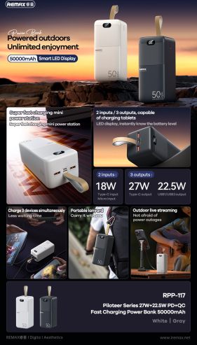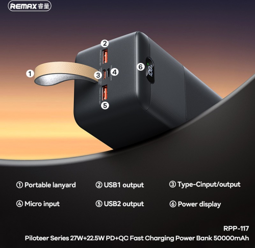 External battery Power Bank Remax RPP-117 22.5W 50000mAh black