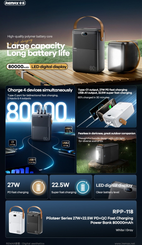External battery Power Bank Remax RPP-118 22.5W 80000mAh black