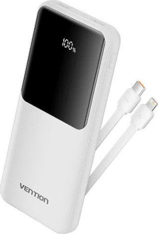 Vention 10000mAh Power Bank 22.5W. Manufacturer Website: https://ventiontech.com/products/10000mah-power-bank-micro-usb-usb-c-usb-a-usb-a-with-built-in-usb-c-and-lightning-cables-22-5w-white-led-display-type?variant=45890400190630 | ||||||||||||||||||||||||||||||||||||