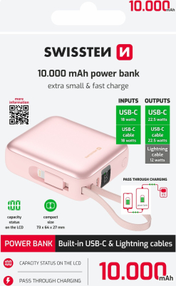 Swissten SPACE Power Bank Universāla Ārējas Uzlādes Baterija USB-C / Lightning / 10000 mAh Rozā