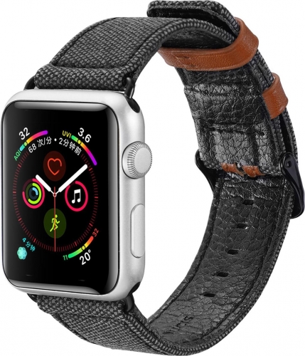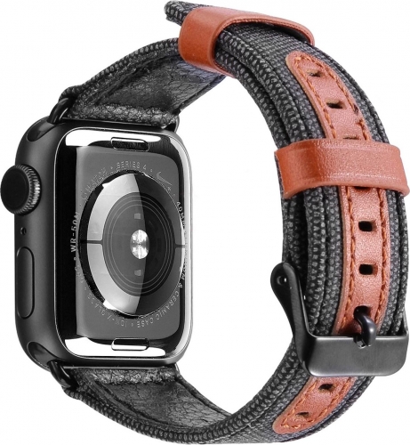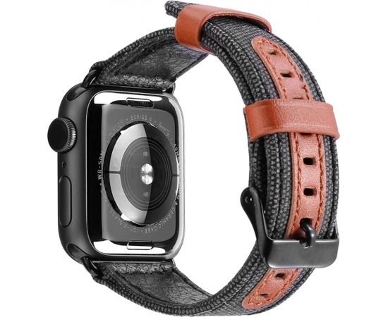 Dux Ducis Canvas Ādas Siksniņa Pulkstenim Apple Watch 38 / 40 mm Melna-Brūna