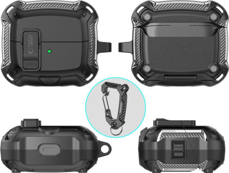 Tech-Protect Carbonox aizsargvāciņš ir ideāls risinājums lietotājiem, kuri novērtē pilnīgu aizsardzību un elegantu stilu. Šis izturīgais, bruņotais futrālis ir izgatavots no augstas kvalitātes TPU un PC materiāliem, nodrošinot maksimālu aizsardzību pret triecieniem, skrāpējumiem un pirkstu nospiedumiem. Inovatīvā slēdzene ar drošu pogu nodrošina vieglu vāciņa atvēršanu un aizvēršanu, nodrošinot austiņu drošību jebkurā situācijā. Carbonox futrālis atbalsta gan vadu, gan bezvadu uzlādi, tāpēc jums tas nav jānoņem, lai uzlādētu austiņas. Izcili funkcionālais dizains ietver priekšpusē redzamu gaismas diodi. Papildīpašība ir izturīga, noņemama atslēgu piekariņš ar karabīni, kas ļauj ērti piestiprināt futrālīti pie atslēgām, somas vai jostas. Turklāt tas ir aprīkots ar tālruņa statīva funkciju, kas ļauj ērti novietot viedtālruni stabilā pozīcijā – ideāli piemērots filmu skatīšanai, videozvaniem vai multimediju lietošanai.