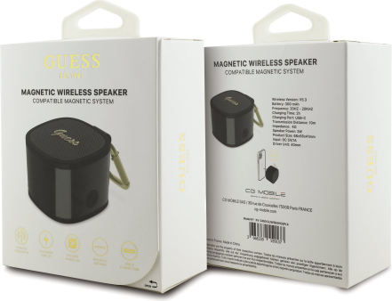 | Guess MagSafe Bluetooth Speaker – kompakts un moderns skaļrunis, kas ļauj baudīt savu iecienīto mūziku jebkurā vietā un laikā. Šis elegantais bezvadu skaļrunis ar magnētisko stiprinājumu piedāvā praktisku lietošanu mājās, ceļā un brīvā laika pavadīšanas laikā. Pateicoties saderīgajai magnētiskajai sistēmai, varat to viegli pievienot savam tālrunim ar MagSafe atbalstu, lai mūzika vienmēr būtu pie rokas. Skaļrunis atbalsta Bluetooth versiju 5.3, kas nodrošina ātru un stabilu savienojumu līdz pat 10 metru attālumam. 3 W jauda ar frekvenču diapazonu no 20 Hz līdz 20 kHz un pretestību 4 omi nodrošina pārsteidzoši skaidru skaņu, neskatoties uz tā mazajiem izmēriem. Augstas kvalitātes 40 mm draiveris nodrošina skaidrus augstumus un dziļākus basus. Pateicoties iebūvētajam akumulatoram ar ietilpību 300mAh, varat baudīt vairākas stundas mūziku. Uzlāde ir ātra un ērta, izmantojot moderno USB-C savienotāju, un tā aizņem apmēram 2 stundas. Komplektā ietilpst praktiska karabīne, kas ļauj ērti piestiprināt un pārnēsāt. Guess MagSafe Bluetooth skaļrunis Black ir ideāls sabiedrotais katrai dienai – stilīgs, pārnēsājams un uzticams. Funkcijas: - Kompakts un elegants Bluetooth skaļrunis ar magnētisku stiprinājumu. - Bluetooth V5.3 atbalsts stabilam un ātram savienojumam. - 3 W skaļruņu jauda ar kvalitatīvu 40 mm draiveri - Frekvenču diapazons 20Hz–20kHz, pretestība 4ohm - Pārraides attālums līdz 10 m - Iebūvēts 300mAh akumulators - Uzlādes laiks apm. 2 stundas, izmantojot USB-C. - Ieeja: DC 5V/1A - Kompaktie izmēri: 66 x 56 x 41 mm - Praktiska karabīne ērtai pārnēsāšanai |