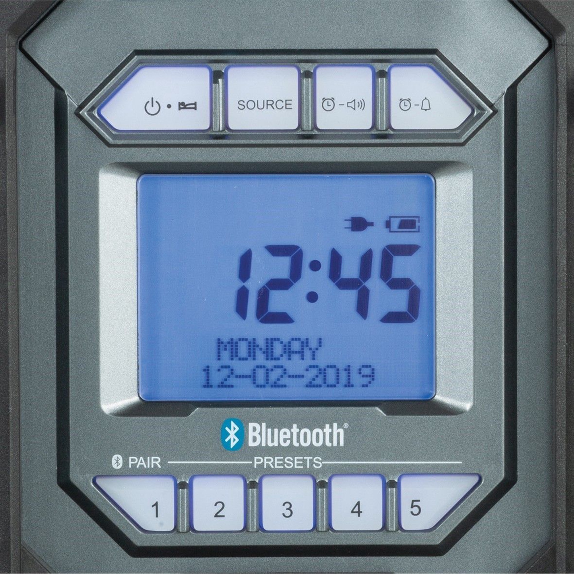 Klausieties mūziku darbā vai ārpus tās ar Makita digitālo Bluetooth uzlādes radio. Radio nodrošina bagātīgu, pilnvērtīgu stereo skaņu no diviem jaudīgiem 89 mm sānu skaļruņiem. Lietotāji var klausīties digitālo radio, FM analogo radio, mobilo ierīci, kas bezvadu režīmā savienota, izmantojot Bluetooth, vai MP3 atskaņotāju, izmantojot palīgievadi.