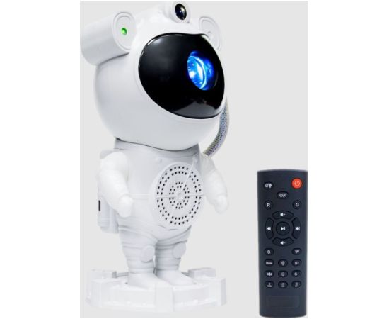 Space magic at home with the Astronaut MDL031W projector! This unique device not only lights up the ceiling with realistic star and nebula projections, but also lets you play your favorite music thanks to the built-in Bluetooth speaker. Ideal for children and adults alike, the projector offers a variety of features that create a relaxing and inspiring atmosphere in any room. The built-in Bluetooth speaker allows you to play your favorite music or audio fairy tales, which makes the evening rituals even more enjoyable. In addition, the projector is loaded with soothing sounds such as the sound of the sea or lullabies to help you relax and fall asleep. With the timer function, the device turns off automatically after 45 or 90 minutes, which makes the projector perfect for use as a night light when putting the child to sleep. Thanks to the remote control, the user can comfortably control all the functions of the projector from anywhere in the room, without having to get up from a comfortable chair or bed. The remote control is equipped with intuitive buttons that allow you to quickly switch between different projection modes, adjust the volume, select your favorite music tracks or even set timers. Functions: