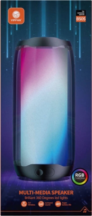 Vipfan Mirage BS05 Bluetooth Wireless SpeakerThe Vipfan BS05 wireless speaker provides high-quality sound and looks great. It is equipped with a magnetic 57mm driver and features colorful RGB backlighting that you can customize according to your preferences. The long-lasting battery allows you to enjoy an operating time of about 4-6 hours, and Bluetooth 5.0 guarantees a reliable connection. You can also play music from a memory card or USB drive.