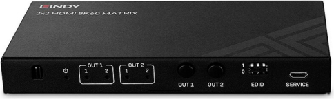 Lindy 2x2 8K60 Matrix HDMI Switch black, EDID Management, remote control