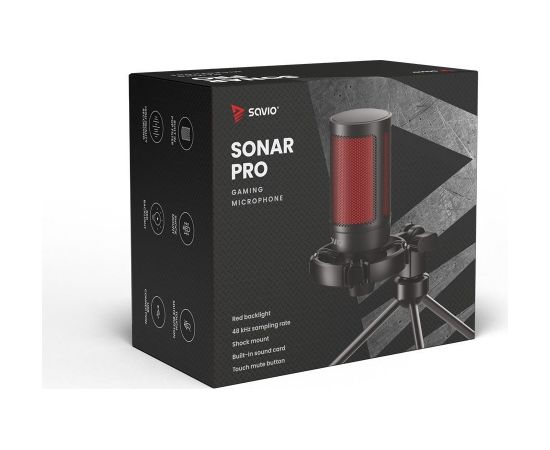 SAVIO wired gaming microphone with backlight, tripod, USB, SONAR PRO