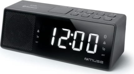 | Divu modinātāju pulksteņa radio PLL ar Bluetooth, 2×1,5 V, M 172 BT, MUSE. Liels balts displejs. FM PLL radio. Divi modinātāji. NFC automātiskās savienošanas funkcija. 1,2 collu balts LED displejs. 24 stundu pulkstenis. Spilgtuma regulators (augsts / zems / izslēgts). Mūzikas straumēšana no Bluetooth saderīgām ierīcēm, piemēram, klēpjdatora, planšetdatora vai viedtālruņa. PLL radio ar 20 FM iepriekš iestatītām stacijām. Automātiska staciju meklēšana un saglabāšana. Manuāla noskaņošana un iepriekš iestatīto staciju saglabāšana. Modināšana ar radio, skaņas signālu vai Bluetooth. Atlikšanas (snooze) un miega (sleep) funkcijas. DC ieeja: 5 V Power Logo 2 A. Rezerves barošana: 2×1,5 V Power Logo AAA/R03/UM4 tipa baterijas (nav iekļautas). 68 mm (A) × 70 mm (P) × 190 mm (G). |