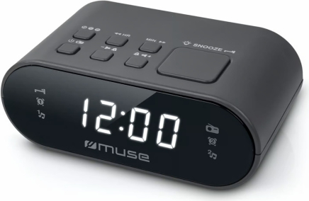 | FM PLL radio, MUSE, M 10 CR. Divkāršs modinātājs. PLL radio ar 20 FM iepriekš saglabātām stacijām. Manuāla uztveršana un iepriekšiestatījumu saglabāšana. Pamošanās ar radio vai signālu. Atkārtošanas (Snooze) un miega (Sleep) funkcija. 0,6 collu balts LED displejs. 24 stundu pulkstenis. Regulējams spilgtums (Augsts / Zems / Izslēgts). AC: 230V ~ 50Hz. Akumulatora rezerves barošana: 3V, 2×1,5V “AAA”/UM4/R03 tipa baterijas (nav iekļautas komplektā). |